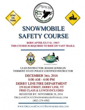 This one day class is developed to meet the standards for Snowmobile safety education established by Vermont. As a course approved by Vermont State Police, it covers everything a new snowmobile operator may need to know in order to be safe in Vermont while snowmobiling.